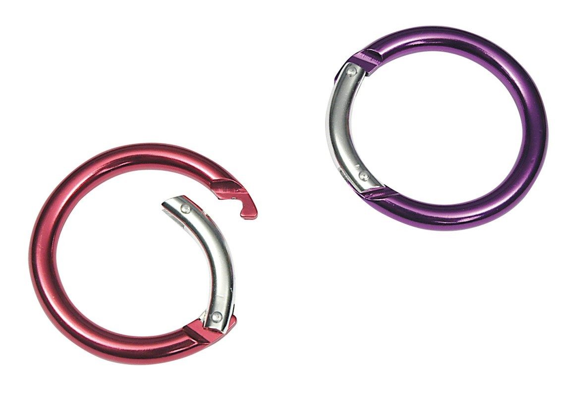 Moschettone di fissaggio in alluminio. Forma rotonda. Non idoneo per assicurare persone. Colori assortiti.